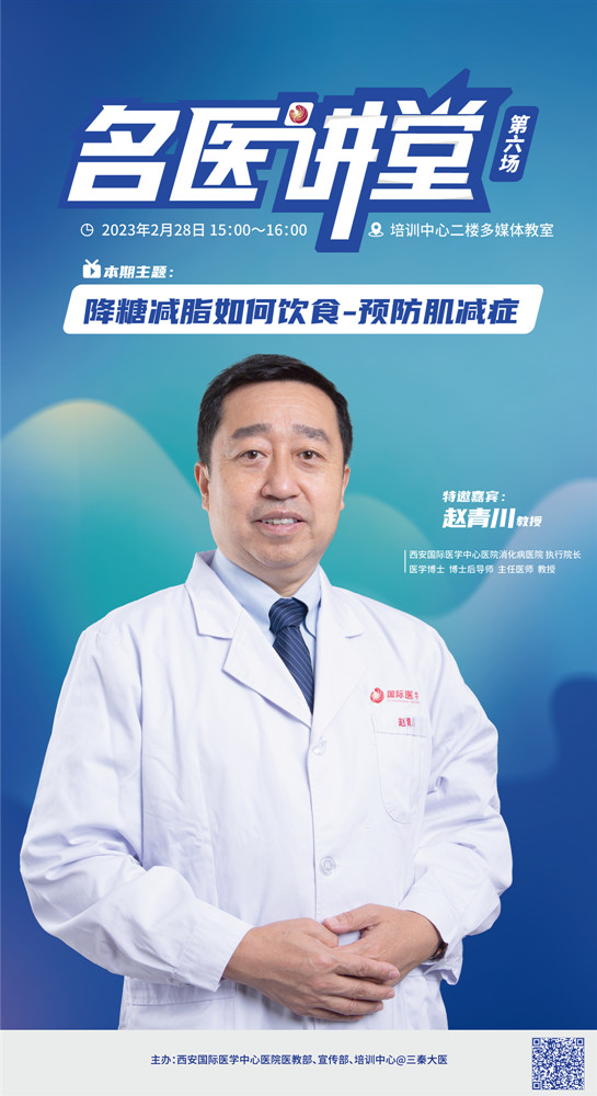 2月28日,消化病醫(yī)院執(zhí)行院長(zhǎng)趙青川教授做客《名醫(yī)講堂》第六期,以“降糖減脂和預(yù)防肌減癥”為主題,為各專科醫(yī)院、科室中青年醫(yī)師分享了自己在肌減癥疾病認(rèn)識(shí)及飲食調(diào)節(jié)方面的經(jīng)驗(yàn)。