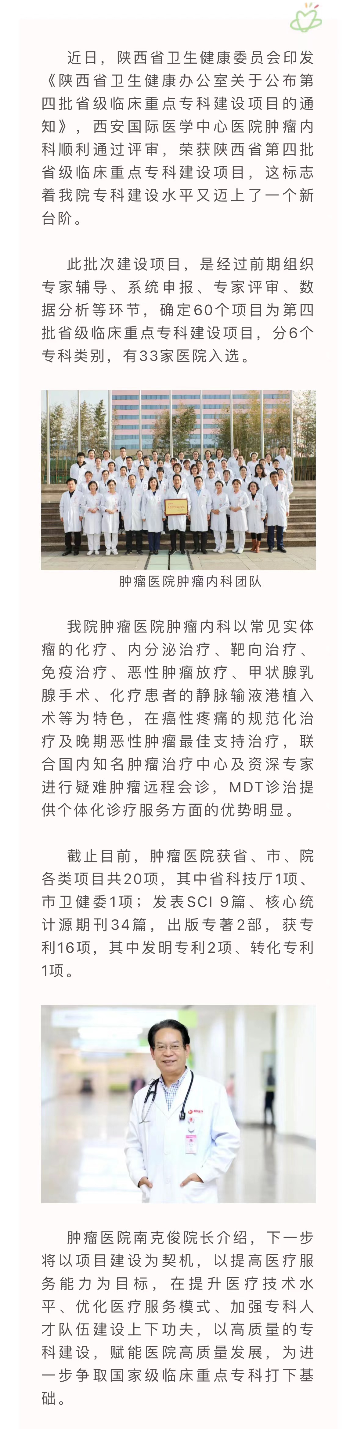 我院腫瘤內(nèi)科榮獲陜西省第四批省級臨床重點(diǎn)??平ㄔO(shè)項(xiàng)目