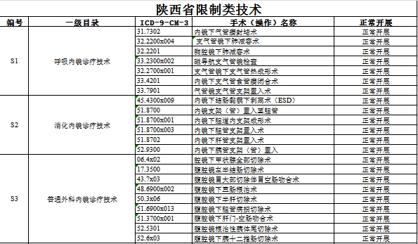 根據(jù)《醫(yī)療技術(shù)臨床應(yīng)用管理辦法》、《國家衛(wèi)生健康委辦公廳關(guān)于印發(fā)國家限制類技術(shù)目錄和臨床應(yīng)用管理規(guī)范(2022年版)的通知》及《陜西省醫(yī)療技術(shù)臨床應(yīng)用管理辦法實施細則 (陜衛(wèi)醫(yī)發(fā)〔2020〕64號 )》等文件要求,醫(yī)教部于前期梳理各科室上報材料,并組織院級醫(yī)療技術(shù)管理委員會審核論證,對于我院已開展的國家級和省級限制類技術(shù)已完成備案工作。現(xiàn)將我院已開展的限制類技術(shù)公布如下。