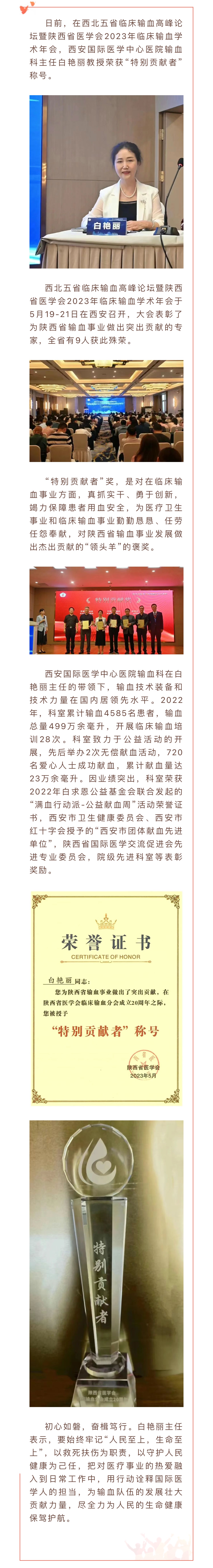 白艷麗獲陜西省醫(yī)學(xué)會“特別貢獻(xiàn)者”稱號