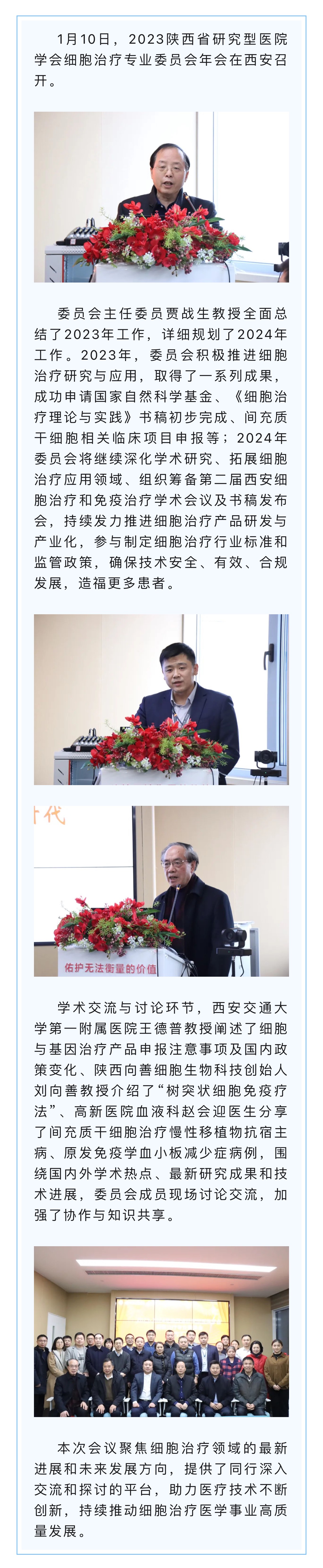 陜西省研究型醫(yī)院學(xué)會細胞治療專業(yè)委員會年會在西安召開