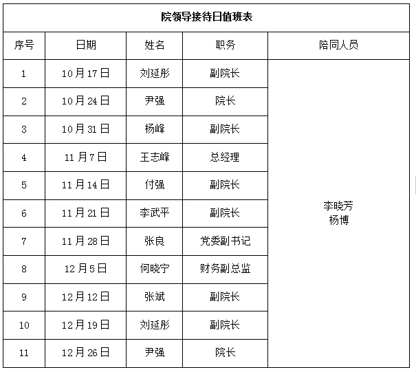西安國際醫(yī)學(xué)中心醫(yī)院院領(lǐng)導(dǎo)接待日排班表
