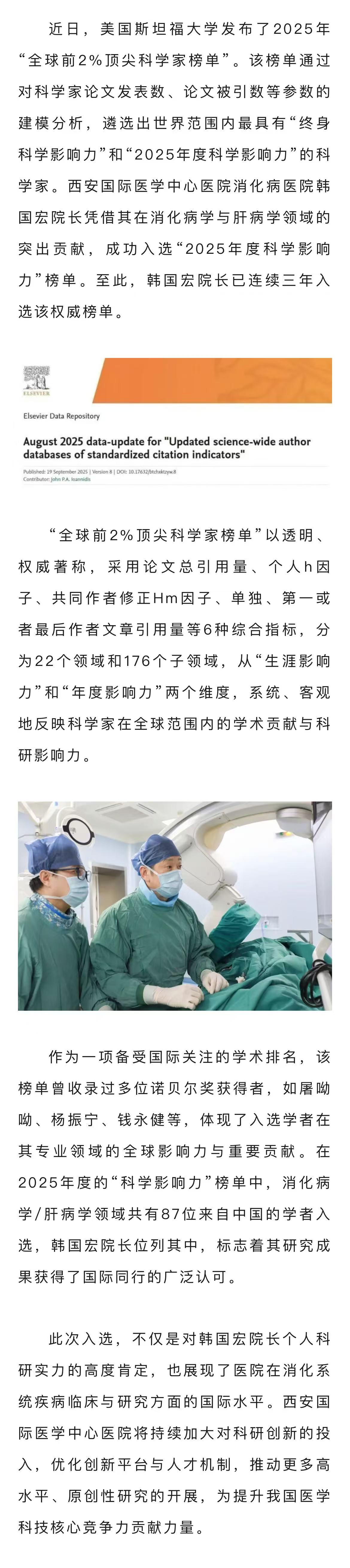 消化病醫(yī)院韓國宏院長入選2025年“全球前2%頂尖科學(xué)家榜單”