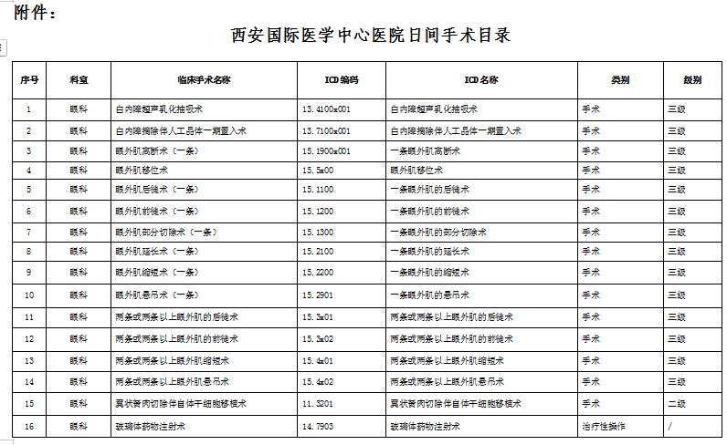 為進(jìn)一步加強(qiáng)本院日間診療管理,規(guī)范日間診療服務(wù)行為,保障日間醫(yī)療質(zhì)量與安全,按照《醫(yī)療機(jī)構(gòu)日間醫(yī)療質(zhì)量管理暫行規(guī)定》、《手術(shù)質(zhì)量安全提升行動(dòng)方案(2023—2025年)》、《提升醫(yī)療質(zhì)量安全行動(dòng)計(jì)劃(2023-2025年)》等各類文件要求,現(xiàn)對(duì)我院日間手術(shù)目錄更新,具體公示如下: