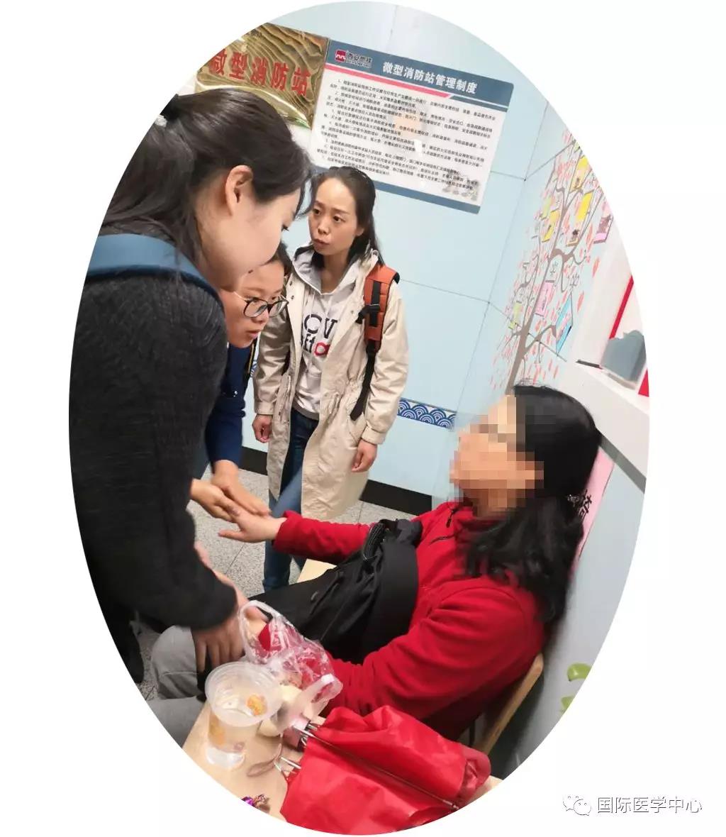 救助點(diǎn)上,一位女士正癱坐在椅子上。經(jīng)初步檢查,該女士面色蒼白、全身發(fā)麻、心慌胸悶、雙手冰涼、心率達(dá)90次/分。經(jīng)詢問(wèn)得知,患者一個(gè)月前診斷患有冠心病。西安國(guó)際醫(yī)學(xué)中心神經(jīng)疾病醫(yī)院護(hù)士長(zhǎng)徐妍、胸科醫(yī)院門診護(hù)士長(zhǎng)馬苗苗陪伴在患者身旁,遞上水和糖塊,喂給患者,不停地為她揉搓雙手促進(jìn)血液循環(huán),并借來(lái)外套保暖,反復(fù)安慰。在大家的安撫下,患者情緒逐漸平穩(wěn)下來(lái)。隨后,她倆又與地鐵工作人員聯(lián)系了患者家屬與醫(yī)院。
